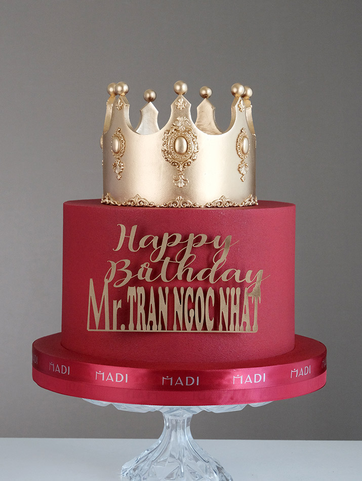 Madi’s cake stands out with red power, created by modern chocolate spraying technique, exuding beauty that is both luxurious and attractive. The highlight is the sparkling gold crown, the symbol of authority and success.