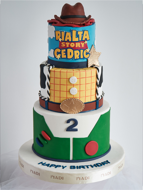 The cake, specially designed by the talented artisans at MaDi House, is dedicated to Rialta and Cedric, inspired by the famous American animated film, Toy Story, creating an impressive masterpiece that marks a memorable milestone for both of you.