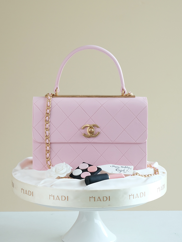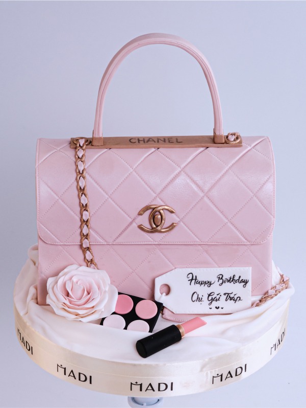 MADI’s cake model is shaped like a lovely pink Chanel bag. Every detail, from the stitching, logo to the strap, is meticulously crafted by the cake artist to create a realistic look of the bag. With the addition of a lipstick and a pink powder box, the cake becomes even more sparkling in the eyes of fashionistas who love the Chanel brand.