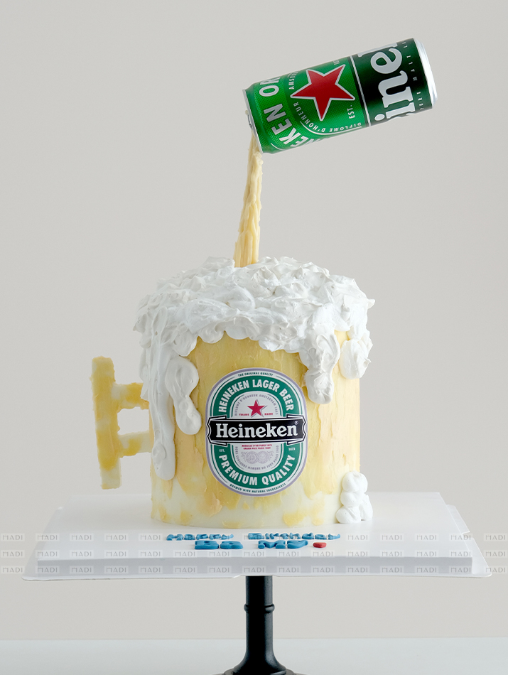 The new Heineken beer cake for friends who invite to drink will create an interesting surprise in the party. The Madi artisan has gathered the idea from the moment of pouring beer to create a white beer foam to create this unique cake. You will not be drunk because of bitterness that will immerse yourself in the sweet taste of this giant beer glass.