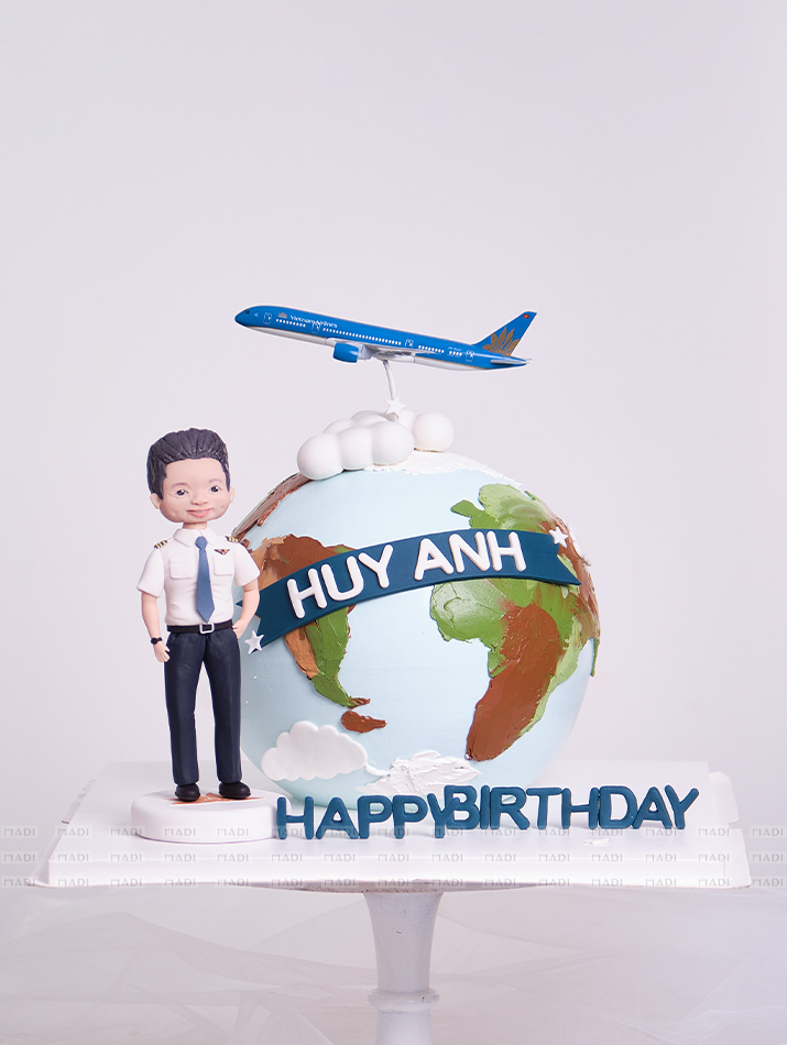 Each shaped cake at MaDi is individually designed in unique styles, especially for important occasions. The cake was designed specifically for a young pilot with a passion for travel.
