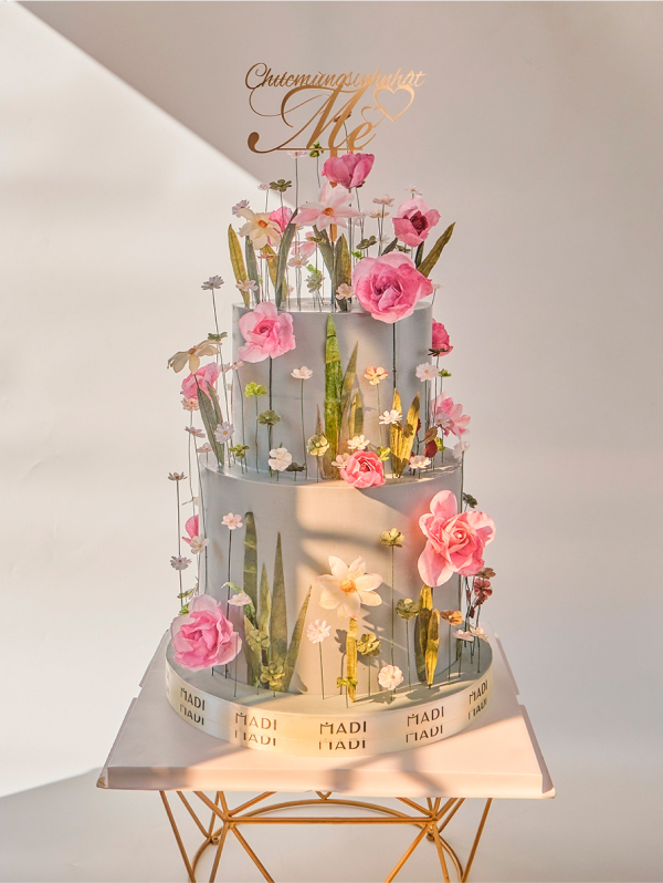 The beautiful rice paper flower garden was skillfully created by the MaDi Cake artist on the birthday cake for Mom. It’s so sparkling and full of emotion!