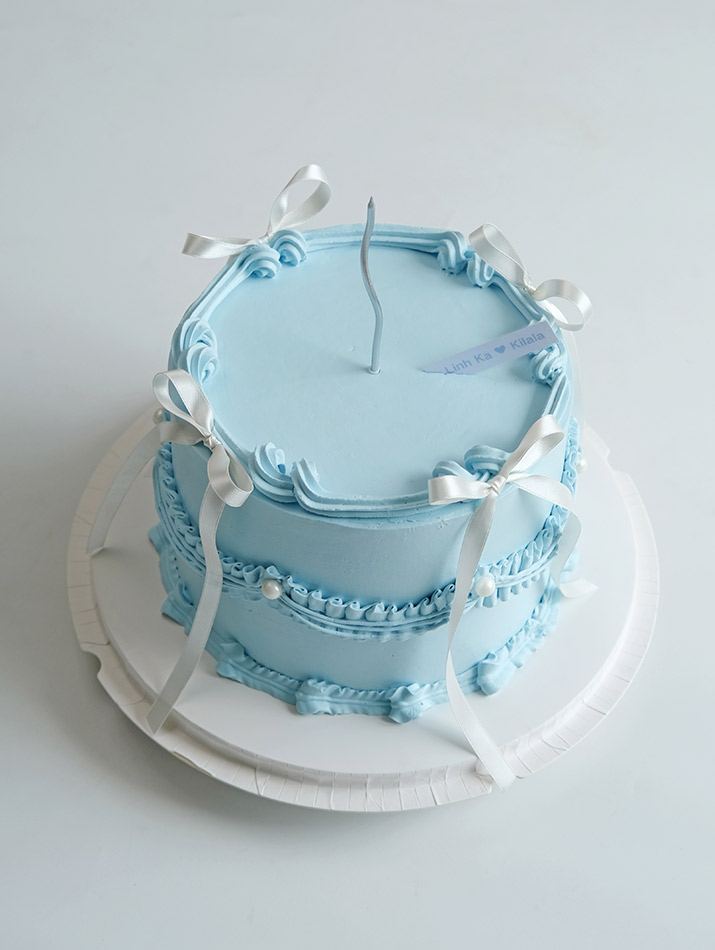 The cool, clear blue color is like a fresh sky, combined with soft cream lines that have created a harmonious and elegant overall. The gentle white bow with beautiful little pearls is a delicate highlight to help the cake become more sophisticated and elegant.