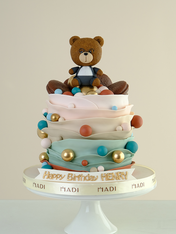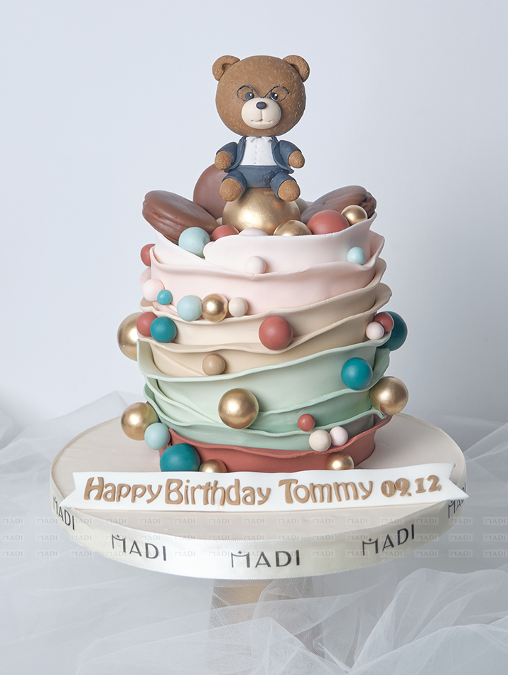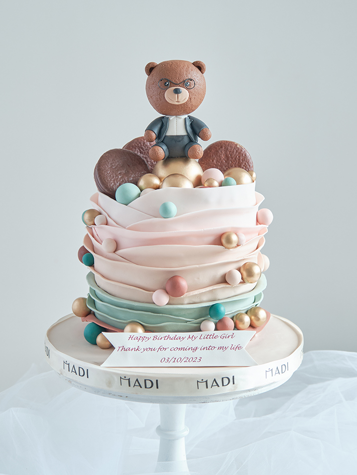 Nghệ nhân nhà MaDi đã tạo nên một chiếc bánh kem với những đường nét nhẹ nhàng và tinh tế, nhân vật gấu nâu nổi bật trên chiếc bánh là hình ảnh đại diện cho tính cách và khả năng lãnh đạo đặc biệt của Sếp Andrew.