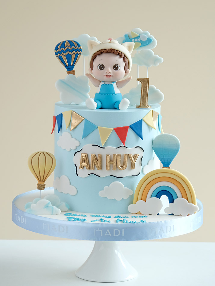 Ba mẹ tặng con chiếc bánh thôi nôi cho bé trai, chúc con lúc nào cũng hồn nhiên vui vẻ bên cạnh ba mẹ nhé!