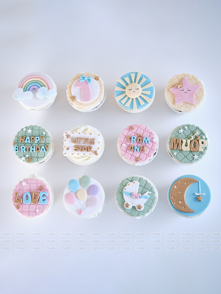 Những chiếc cupcake nhỏ xinh mang lời chúc yêu thương gửi đến Minh Nghi, mong cô bé mãi hạnh phúc, vui tươi và tỏa sáng như một ngôi sao nhỏ giữa bầu trời rộng lớn.