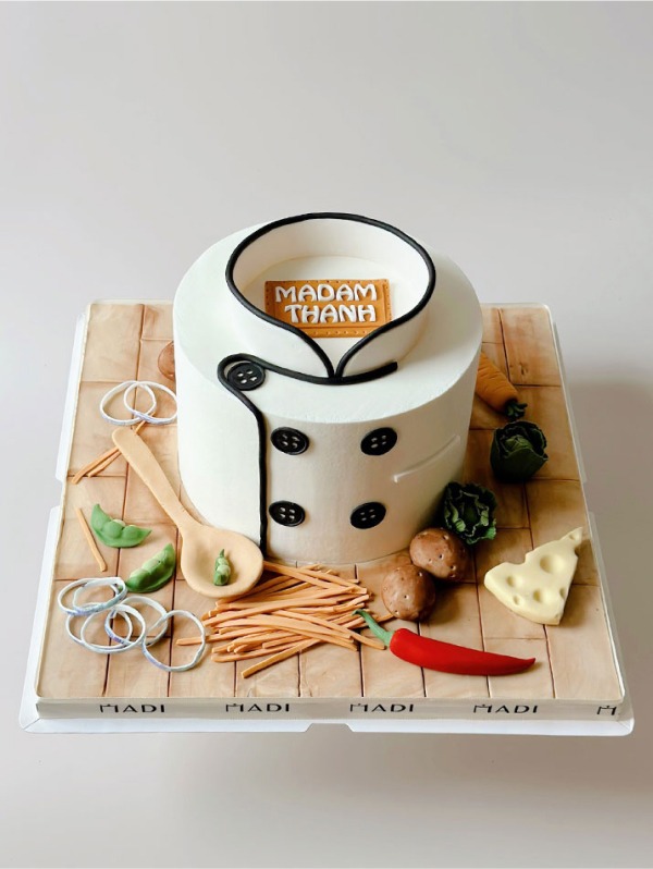 Chiếc bánh kem chúc mừng sinh nhật người nghệ nhân ẩm thực Madam Thanh được MaDi thiết kế đặc biệt tỉ mỉ và tinh tế.