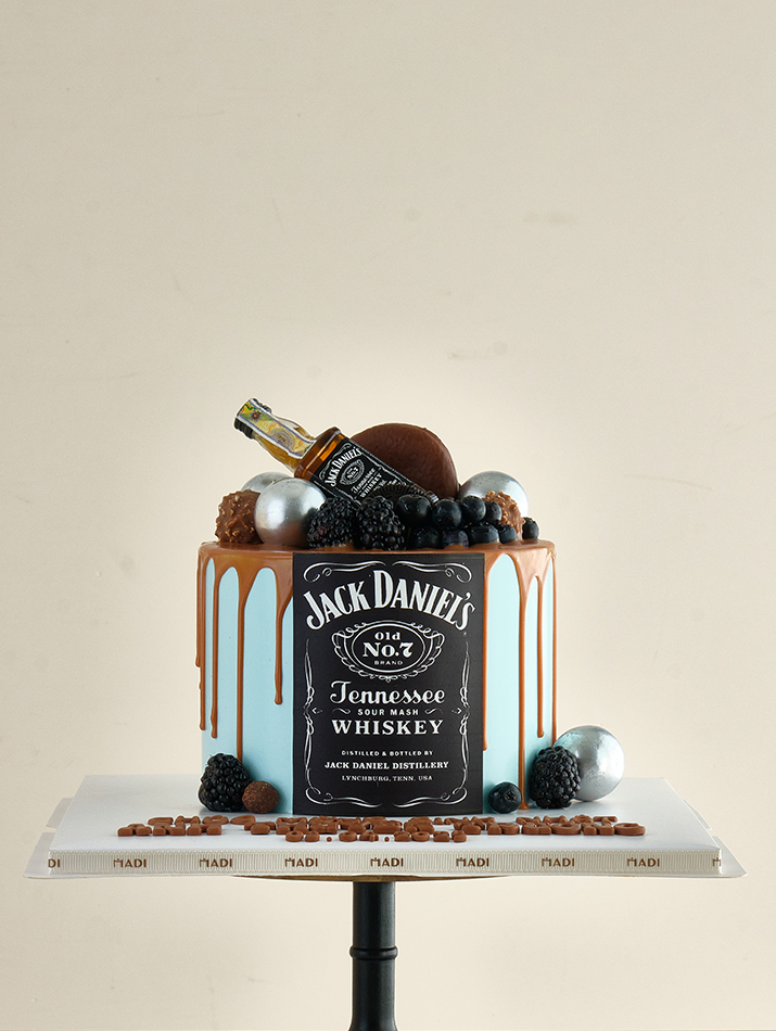 Lấy cảm hứng từ dòng rượu whiskey Jack Daniel's danh tiếng, chiếc bánh kem chai rượu mang đến hương vị mạnh mẽ với vẻ ngoài đầy lôi cuốn, như chính tinh thần của người đàn ông hiện đại: tinh tế, lịch lãm nhưng vẫn đầy chất “ngầu”.