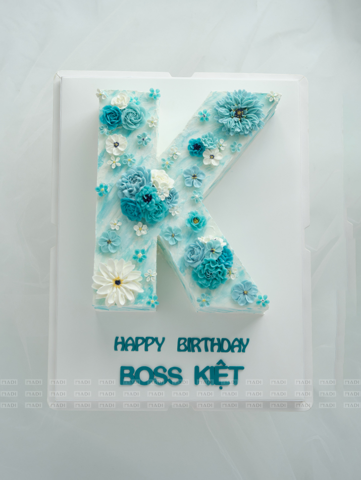 Bánh kem sinh nhật tạo hình chữ cái được trang trí cùng với hoa kem bơ sẽ là một món quà bất ngờ và đặc biệt dành cho người bạn thân yêu.